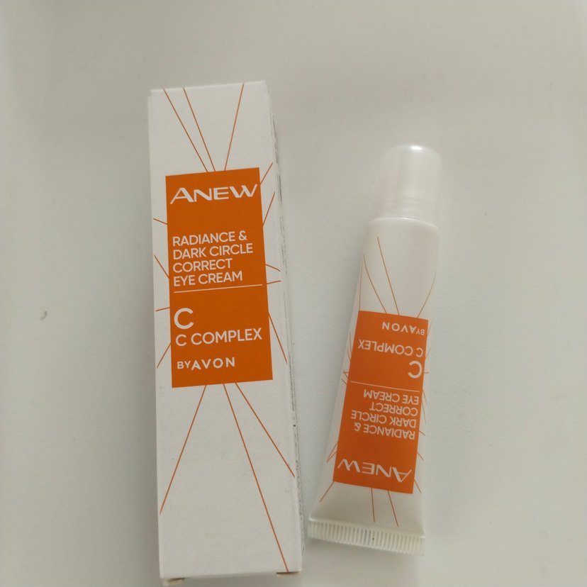 Avon Anew C Complex göz kremi, parlak turuncu tüpte. Işıltı ve koyu halkalara karşı etkili.