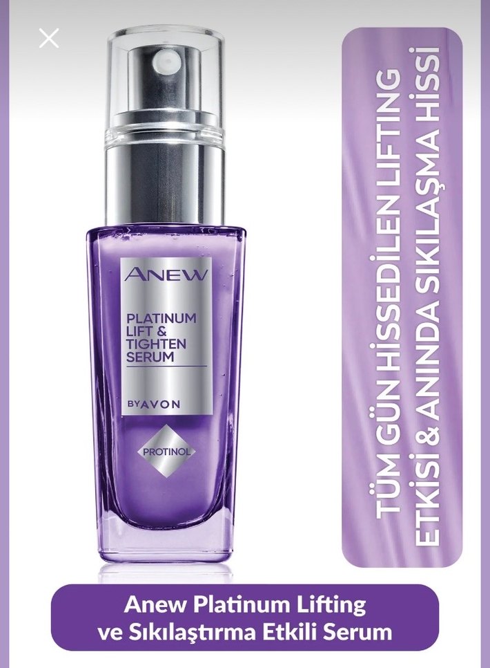 Anew Platinum Lifting ve Sıkılaştırma Etkili Serum, tüm gün hissedilen lifting etkisi ve anında sıkılaşma hissi sağlar. Avon Anew Sıklaştırıcı Serum. #kadın #kozmetik #ciltbakımı #serum #sıklaştırıcı #onarıcı #yenileyici #besleyici #collagen #kolojen #kırışıklık #defosuz #günlük #kırışıklıkgiderici #yeniveetiketli #avon #anew #lifting #ciltserumu
