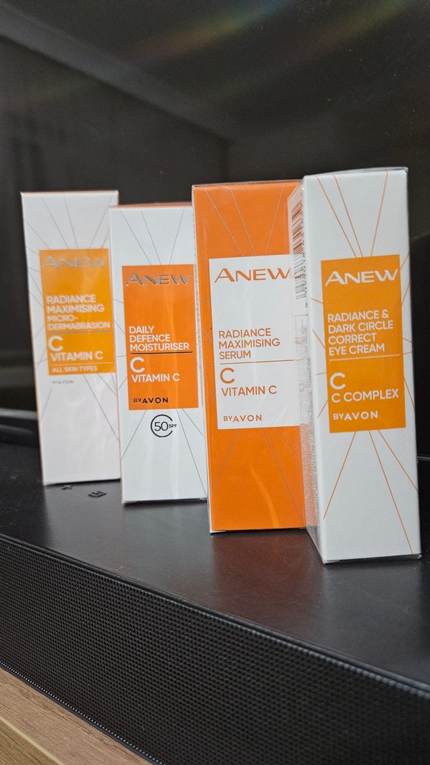 Avon Anew Vitamin C serumu, günlük koruyucu nemlendirici ve koyu halka karşı göz kremi seti, cilde ışıltı kazandırır.