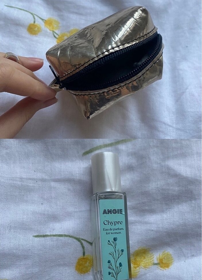 Çiçek desenli küçük şişede ANGIE Chypre kadın parfümü ve bozuk para cüzdanı