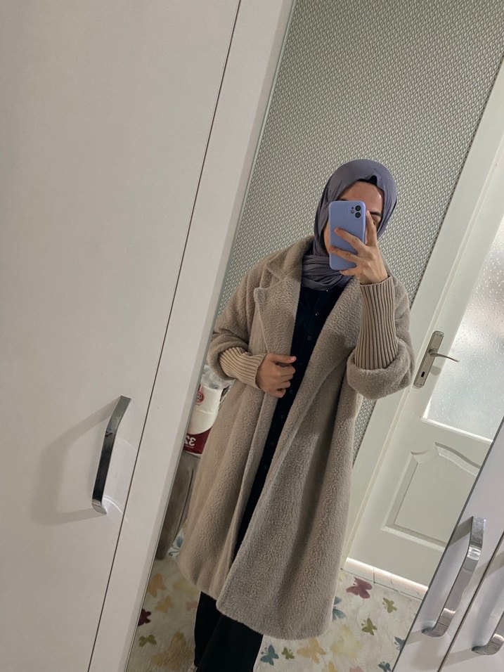 1 beden 36-38-40 bedene uyumlu angora kaban yumuşacık ve sıcak tutar sorunsuz temizdir