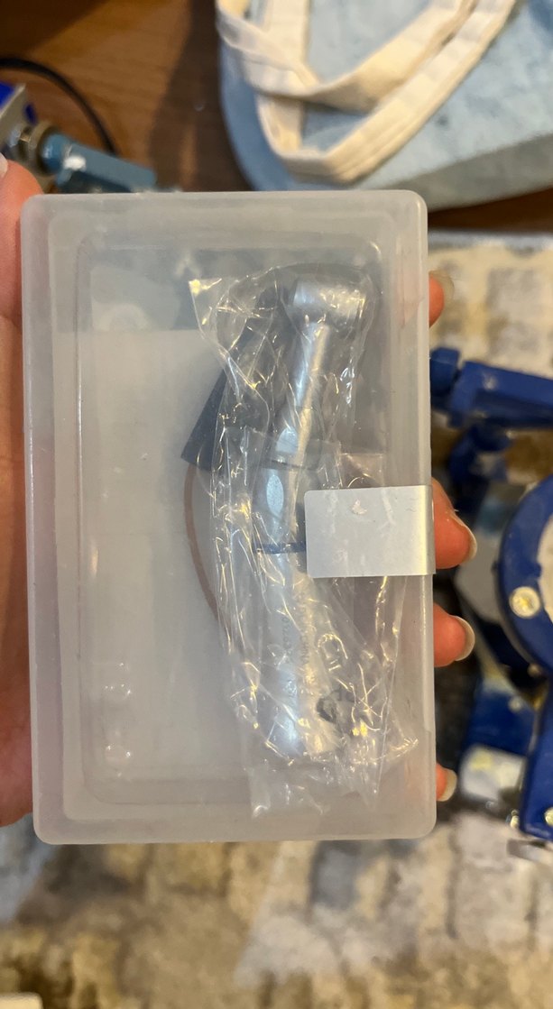 Şeffaf plastik kutuda metal alet içeren gri sterilizatör seti. Profesyonel sterilizasyon için uygundur.