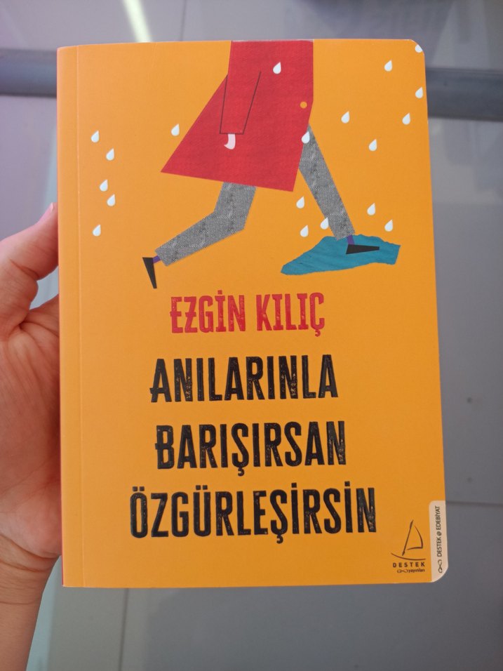 Ezgin Kılıç'ın 'Anılarınla Barışırsan Özgürleşirsin' adlı romanı, yağmurda yürüyen bir kişinin çizimiyle turuncu kapaklıdır. Hafıza ve özgürlük temalarını işler.