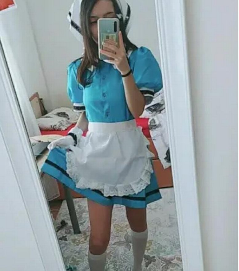 saç parçası eldivenleri ve önlüğü kayboldu.Sadece elbisesi var.El yapımıdır.#anime #cosplay #maid #kawaii #manga