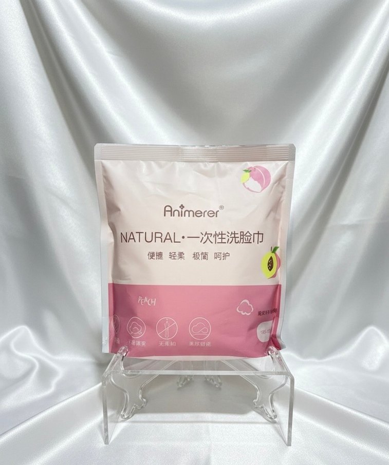 Animerer Natural tek kullanımlık, şeftali kokulu yüz bezleri, nazik ve pratik cilt temizliği sağlar.