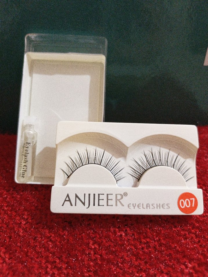 ANJIEER markasına ait siyah, parlak takma kirpik seti ve uygulama için Exelash yapıştırıcı içerir. Model 007. ️❤
