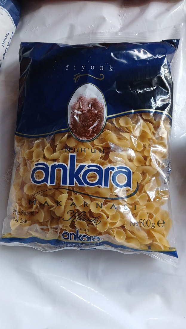 Ankara markasının 500 gram ağırlığında fiyonk şeklinde makarnası. Pişirme süresi yaklaşık 7-9 dakikadır.