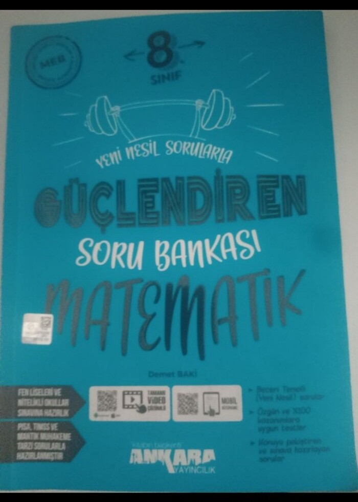 Ankara yayıncılık 8. Sınıf matematik test kitabıdir.İlk dönem konularının bile bir kısmı çözülmüştür.İkinci döneme hiç dokunulmadı.Kolaydan başlatarak adım adım zirveye çıkaran bir kitap.Yeni nesil sorularda gayet kaliteli.