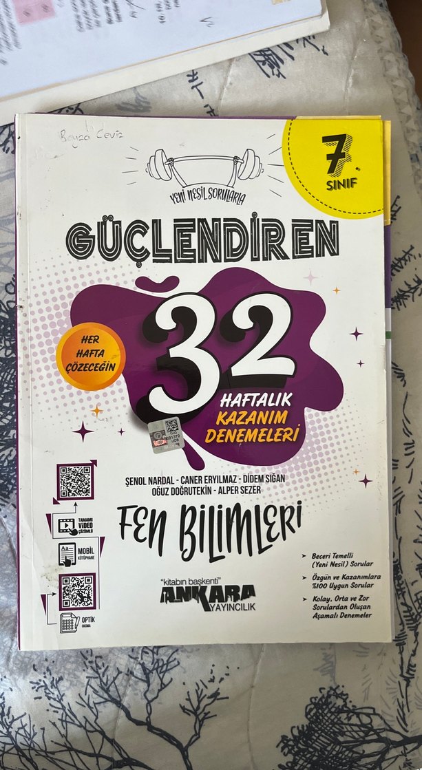7. sınıf fen bilimleri için 32 haftalık kazanım denemeleri. Beceri temelli, yeni nesil sorular ve aşamalı zorluk içerir. İlk 7 deneme çözülmüştür gerisi boş ve sorunsuz.