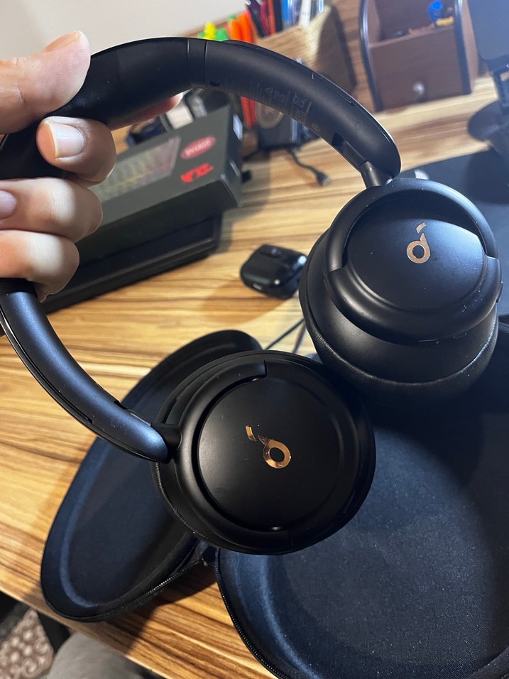 Siyah kablosuz kulaklık, yumuşak kulaklık pedleri ve ayarlanabilir kafa bandı ile rahat kullanım sağlar. Pedleri eskidi sadece durduğu için görselde mevcut. Kutusu faturası yok çantası var