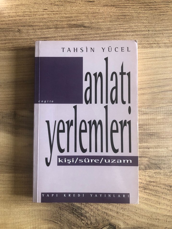 Tahsin Yücel'in Anlatı Yerlemleri kitabı, kişi, süre ve uzam kavramlarını inceliyor. Yapı Kredi Yayınları tarafından yayımlandı. (kitapta isim yazılı ve bazı saylarda altı çizili satırlar mevcuttur)