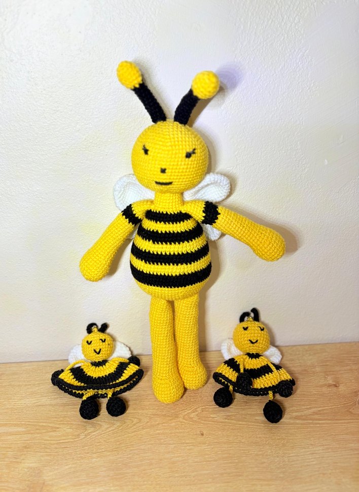 amigurumi el örgüsü anne arımaya ve yavru arı maya anaktarlık 35 cm boyundadır makinede yıkanır birşey olmuyor çocuklar çok severek oynuyor hatta yatarken bile yanlarından ayırmıyor