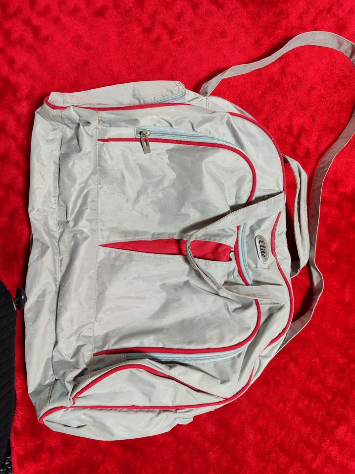 Sentetik kumaştan gri kadın spor çantası, fermuarlı cepleri ve desensiz sade tasarımıyla athleisure ve streetwear tarzına uygun.