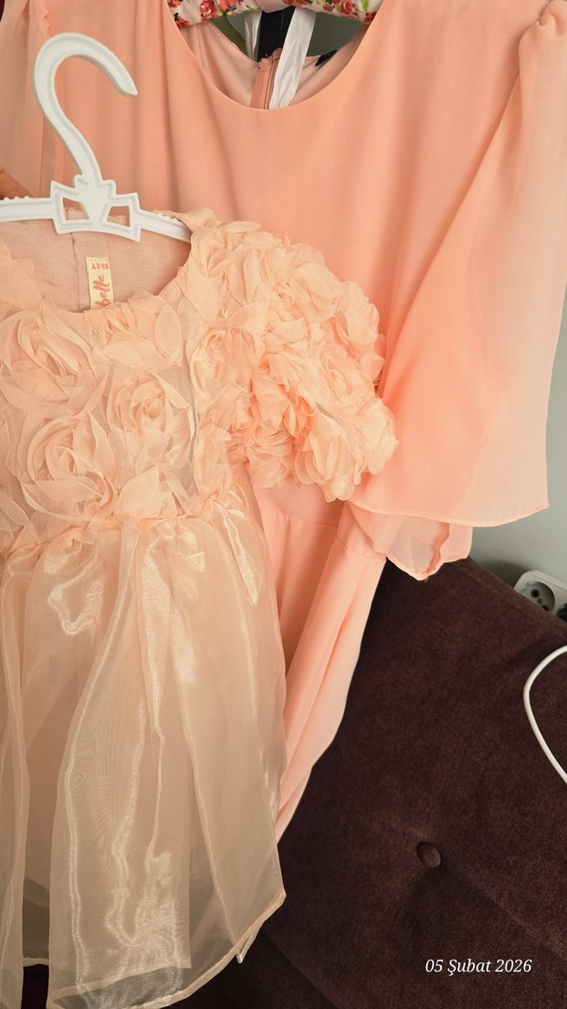Pembe pastel renkte, çiçek desenli ve fırfırlı detaylara sahip, yumuşak kumaştan yapılmış kız çocuk elbisesi. 2 yaş anne elbisesi 38 beden ben bir yas dogum gununde kullanmıstım tekrar gıyılmeyecegı için satılık herhangı bı sorun yok