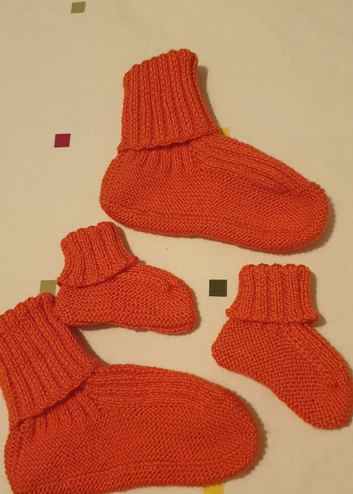 El örgüsü anne kız ev patiği anne patiği esnedigi icin 36 -39 no için uygun. Bebek patiği tabani esnetilmeden uzunluğu 13cm