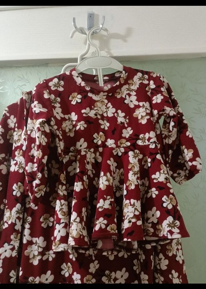 ürünü çok az kullandık anne L beden ama kumaş likralı oldugu için 42.44 bedende giyebilir ANNE elbise boyu 130 cm bebek olanı kızım 6 aylıkken giydi anne bebek ölçülerini çektim ordan inceleme yapabilirsiniz hiç bir yerinden kusur yoktur