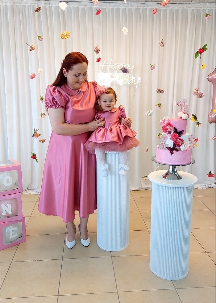 Kızımın 1.yaş günü için diktirdim 3 saat giyildi sadece. Diken kişi getirdiğinde de var olan anne elbisesinin bel kısmında hafif siyah leke var belli olmuyor dikkat etmediğin sürece.170 boy 90 kg giydim