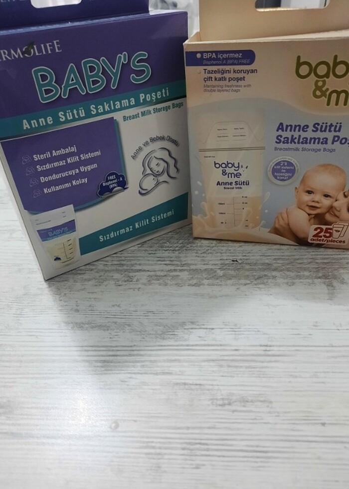 Dermolıfe babys ve baby me anne sütü saklama poşeti Dermolıfe içinde 1 adet kullanıldı 19 adet mevcut Baby me 13 adet var sorunsuz