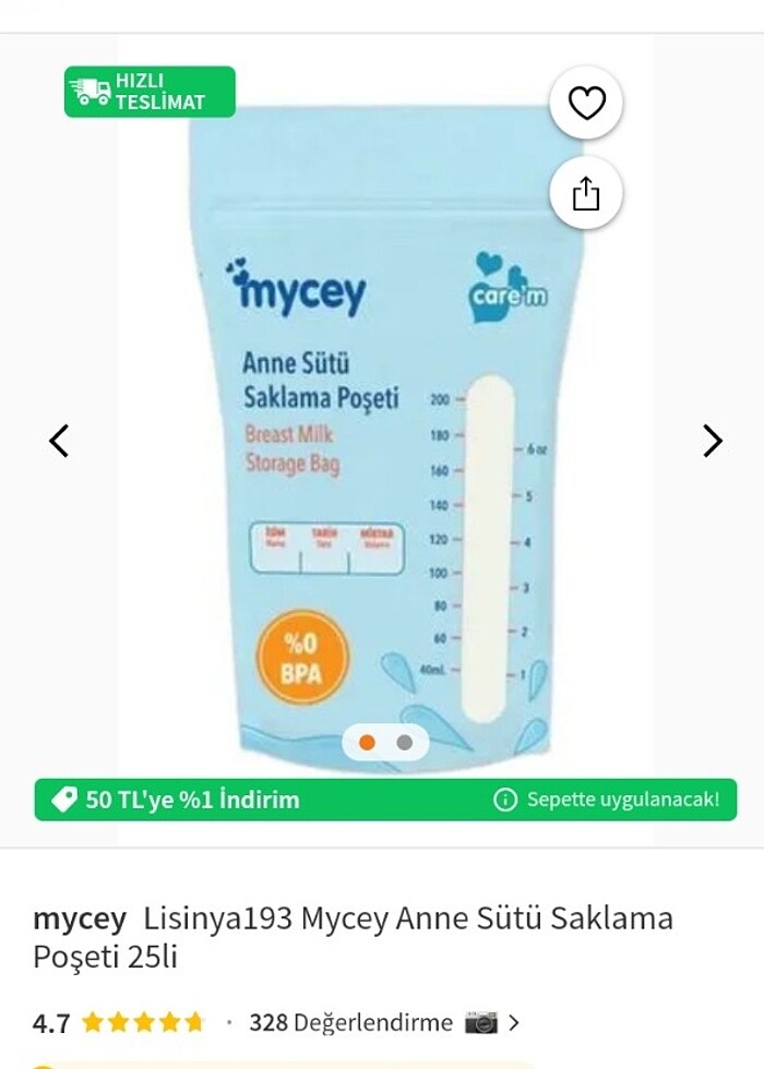 Anne sütü saklama poşeti