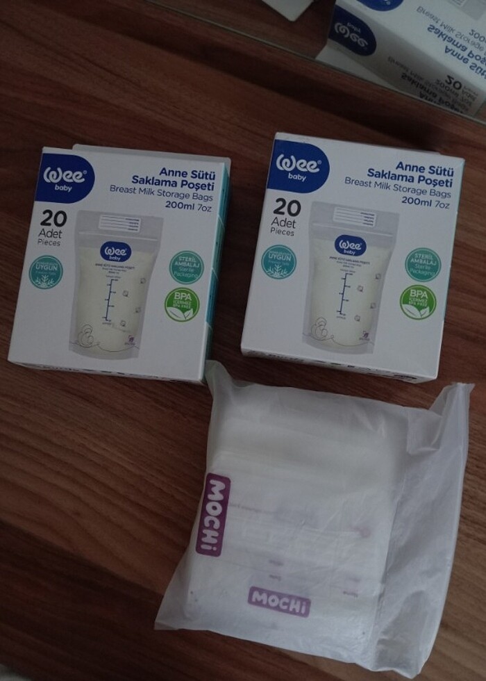 26 tane Wee Baby 16 tane Mochi marka Toplam 42 adet süt saklama poşeti