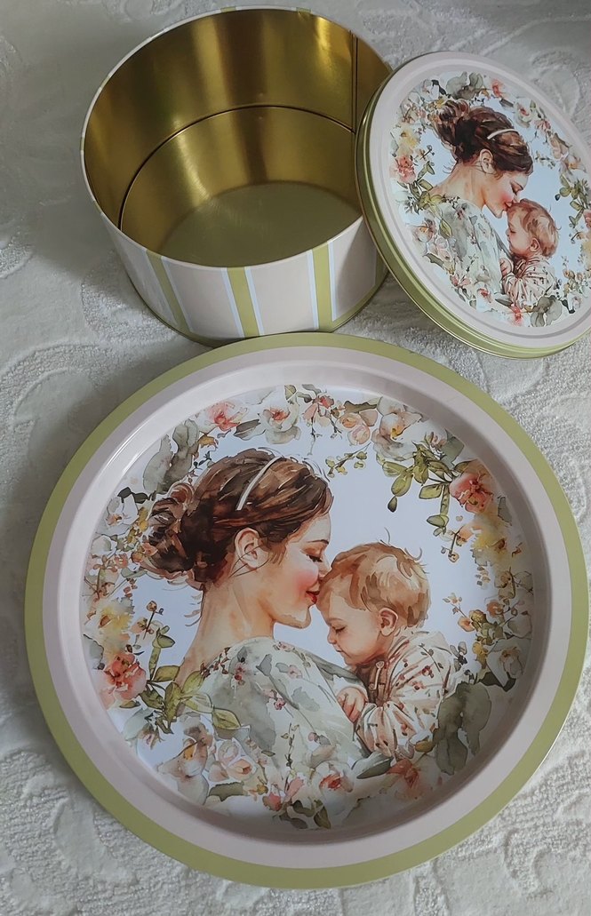 Anne ve Bebek Temalı Dekoratif Metal Kutu 24x11 cm tepsi 39 cm.