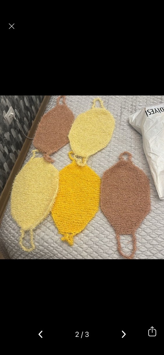 Asma halkalı, açık tonlarda çok renkli banyo süngerleri. Banyo sırasında nazik peeling için uygundur.