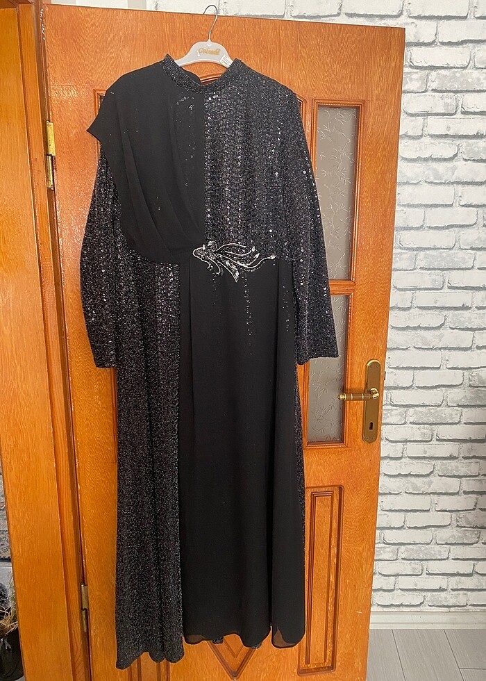 Abimin düğününde bir defa giyildi rahat 50 beden abiye elbise