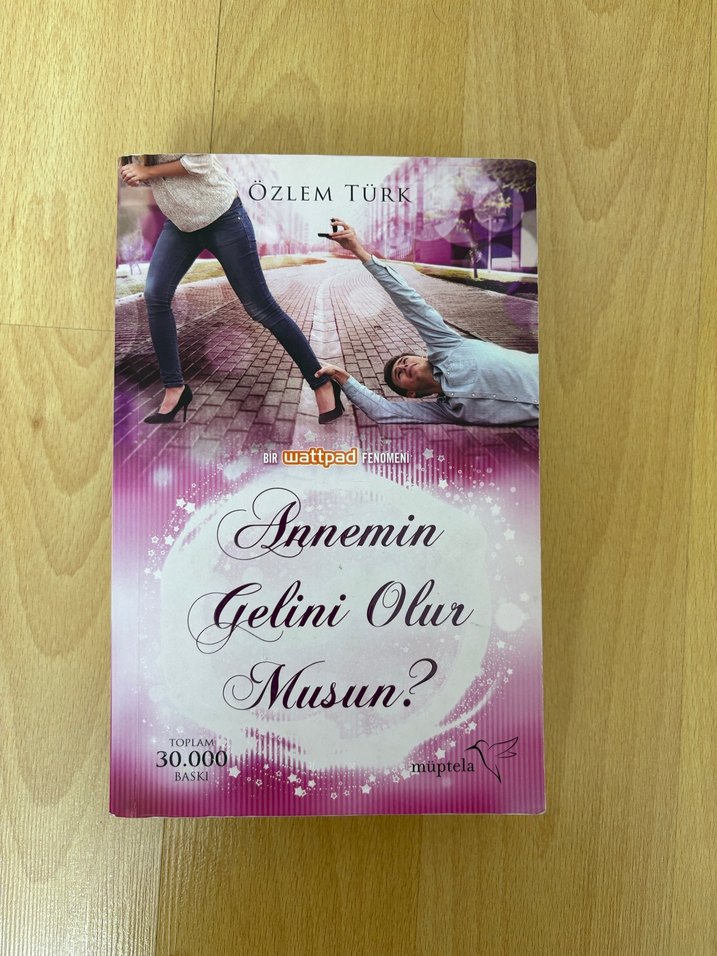 Özlem Türk'ün "Annemin Gelini Olur Musun?" adlı romanı, 30.000'den fazla baskıya sahip. Kapakta bir kadın yürürken yerde bir adam görülüyor.