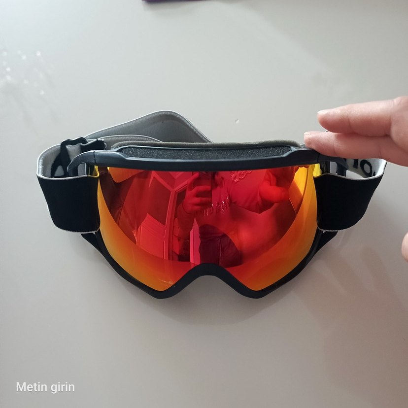 Erkekler için kırmızı unpatterned lensli biker tarzı kayak gözlüğü. Yumuşak fleece astar ve ayarlanabilir Velcro kayış içerir. orjınal camda küçük çizik olabilir