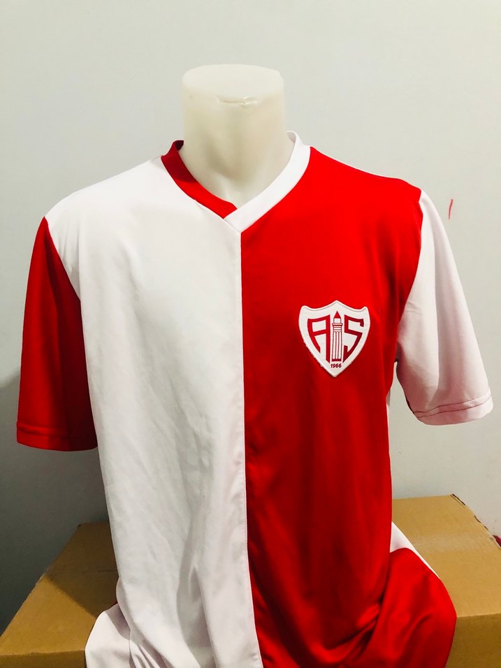Kırmızı ve beyaz renklerde, yuvarlak yaka ve kısa kollu erkek spor tişörtü. Sentetik kumaştan, bol kesim ve cırt cırt detaylıdır. ♂️