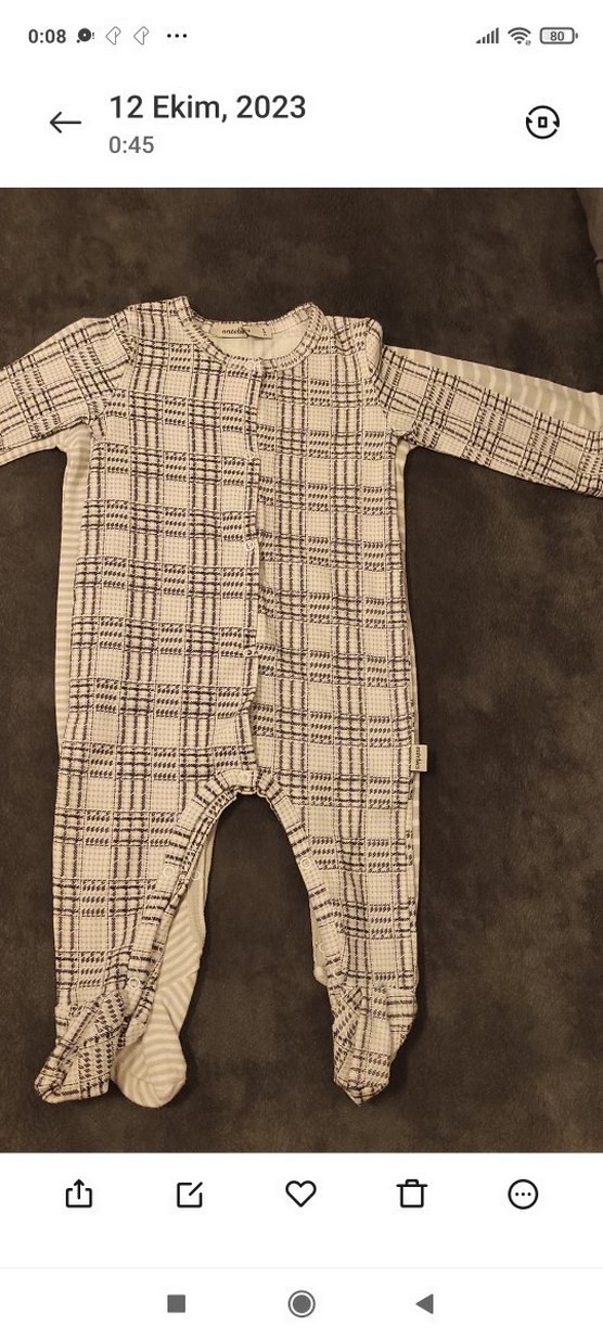 Uzun kollu, yakalı erkek bebek tulumu. Örme organik kumaştan, sokak stilinde, beyaz ve siyah tonlarda.