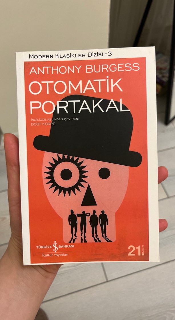 Anthony Burgess'in "Otomatik Portakal" adlı eseri, Modern Klasikler Dizisi kapsamında yayımlanmıştır. Turuncu kapak ve sembolik grafiklere sahiptir.