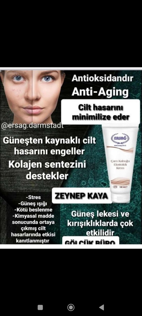 Kolajen sentezini destekleyen, stres, güneş ışığı ve kötü beslenme kaynaklı cilt hasarını minimize eden antioksidan etkili cilt bakım kremi. Güneş lekeleri ve kırışıklıklarda fazlasıyla etkilidir.