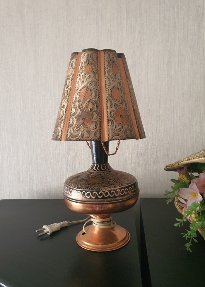 Bu ürün çok eski yıllardan. 38 santim boyu. lambası çalışmıyor ama yaptırılabilir. El işçiliği #lamba #antika #abajur #antika #bakır