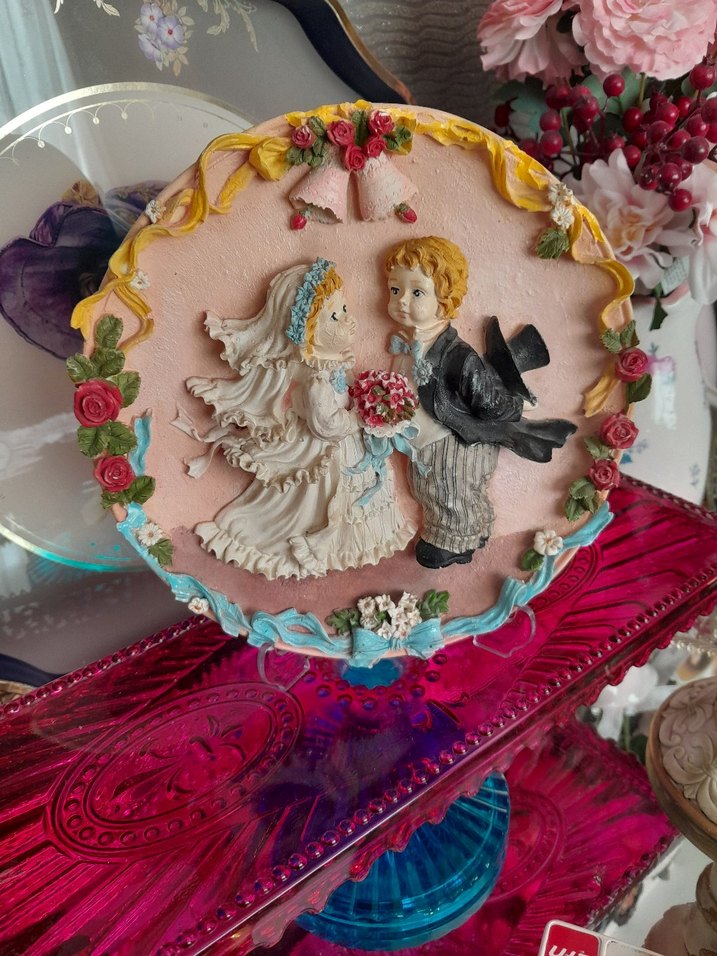 Antik italyan Çift Figürlü bisküvi Dekoratif Tablo