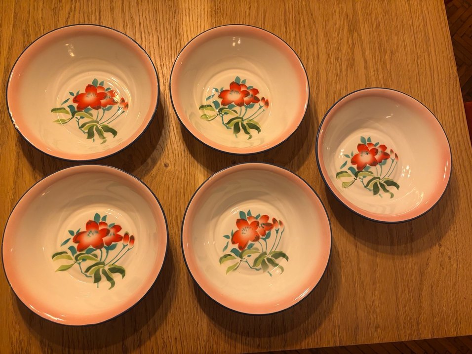 #antika #1950 #1980 #yılına #ait #emaye #tabak #uzak #doğu #çin #china #marka #çukur #emaye #çinko #tabak #Canlı #pastel #tonda #kırmızı #çiçek #desenli #emaye #malzemeden #yapılmış 5’li #22 cm #tabak #seti. #marka #temsili #vitange #antika #nostalji