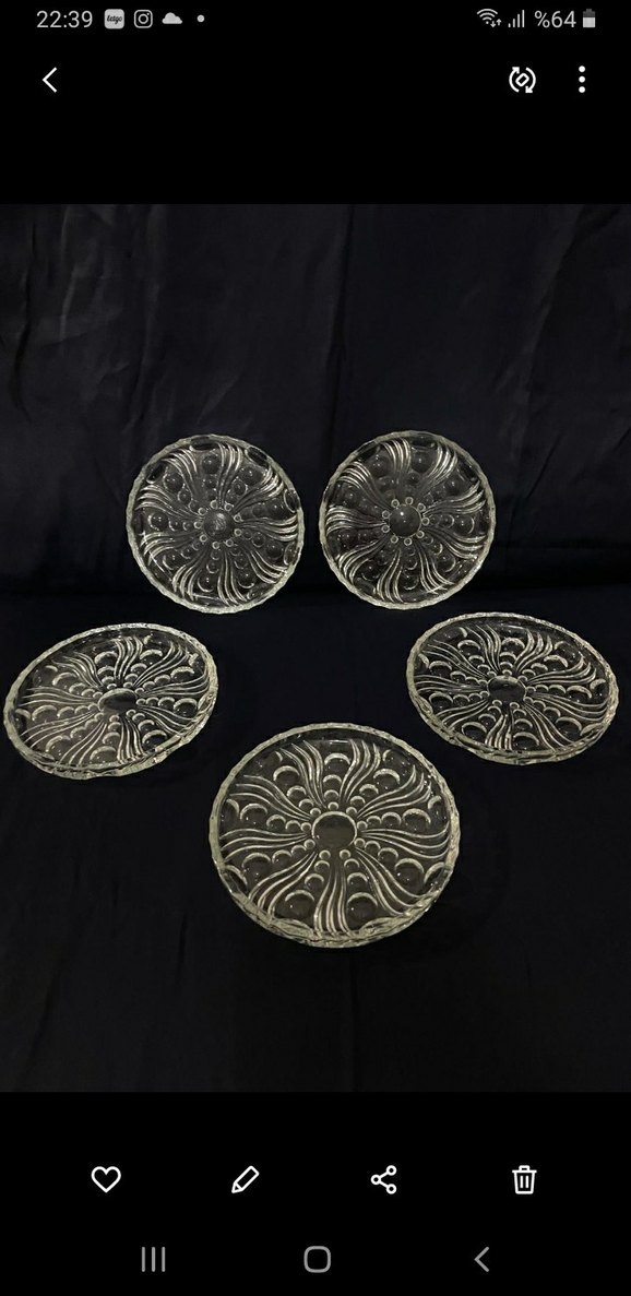 Eskilerden kalma Şişecam üretimi dökme kalın cam 5 adet tabak.Ölçüleri fotoğraflarda var. #Şişecam#antikatabak