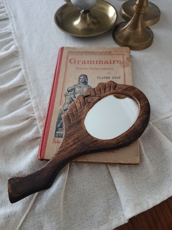 Antika Ahşap El Aynası
