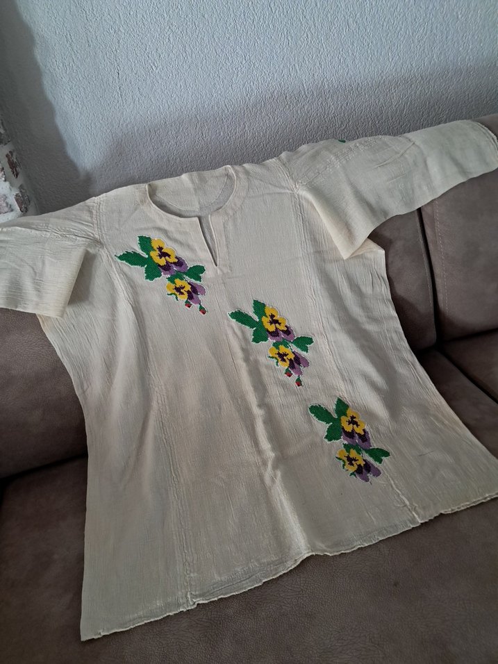 Sandık ürünü eski kanevelerle aplike edilmiş, bol kesim antika göynek tasarım üründür. Lekesiz Sağlam kusursuz ve çok temizdir Sadece yakası açılarak ve aplike edilerek İnce işçilikle tasarlanmıştır kusursuz ve kullanılmamıştır.