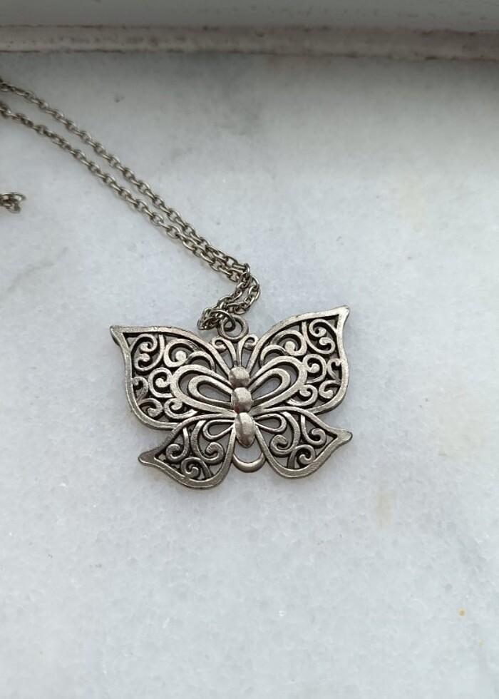 antika bakır bohem kelebek kolye