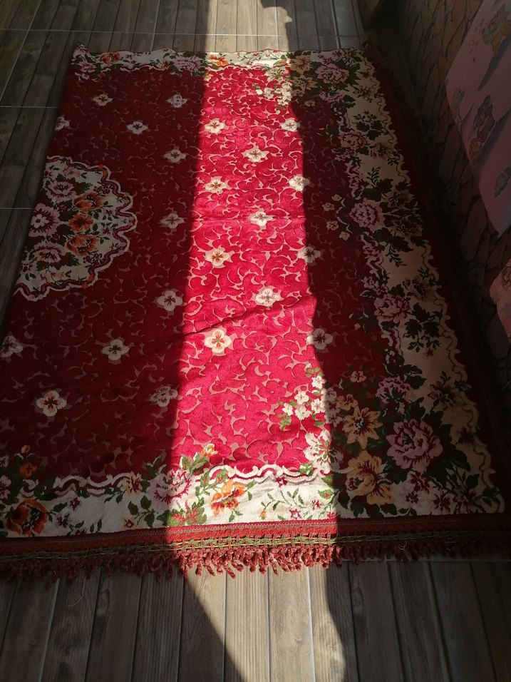 Antika Klasik tarzda, canlı bordodan oluşan deseni ve çiçek motifli kenarlarıyla sıcaklık katan halı. Yatak örtüsü