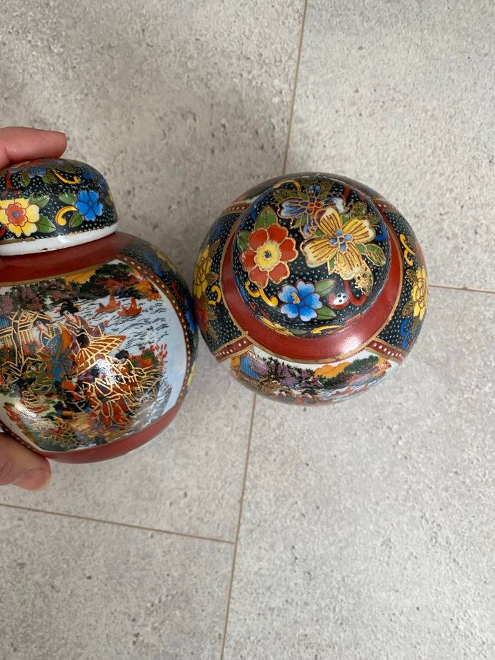 Üzeri el boyama,yaldızlı ve mine işçilikli mükemmel desenleriyle ikili 13 cm yüksekliğinde porselen vazo