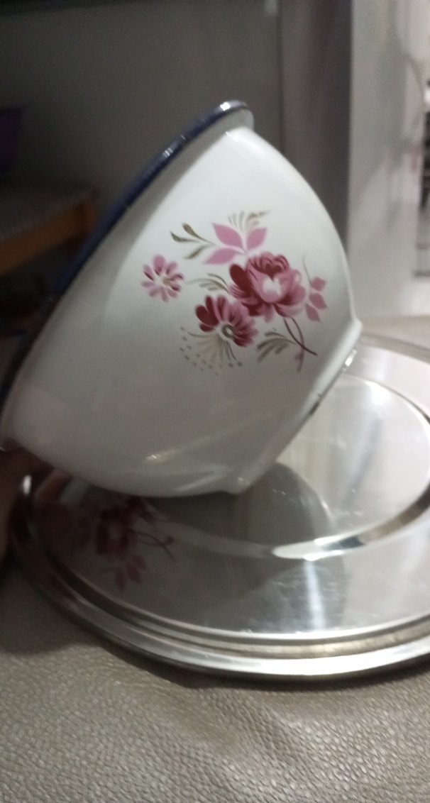 antika çinko kase Beyaz Çiçek Desenli Kase