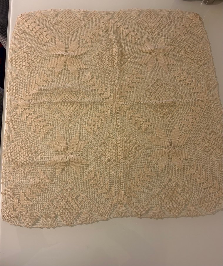 hiç kullanılmamış elişi kare dantel örtü 67*67cm nostaljik tümüyle elişi sandıktan çıkarılmış antika örtü son fiyattır , yumuşak bej renkte detaylı geometrik desenlere sahip, el yapımı dokunuş katıyor.