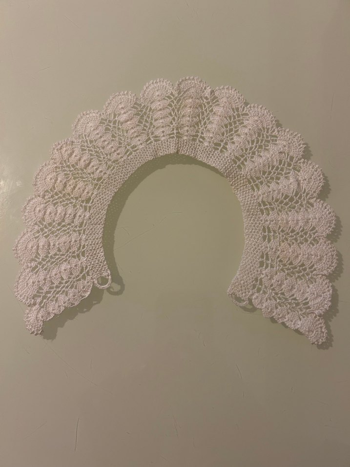 elişiyle yapılmış dantel yaka sandıktan çıkarılmış hiçbir kusuru yok 22 cm genişliğinde antikaseverler için ideal bir vintage parça