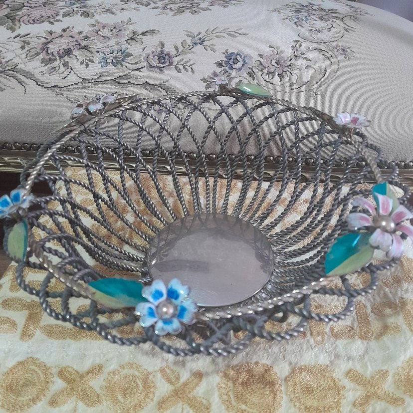 El yapımı olup kenarları hasır örülmüş antika değeri olan sunumlukdur.