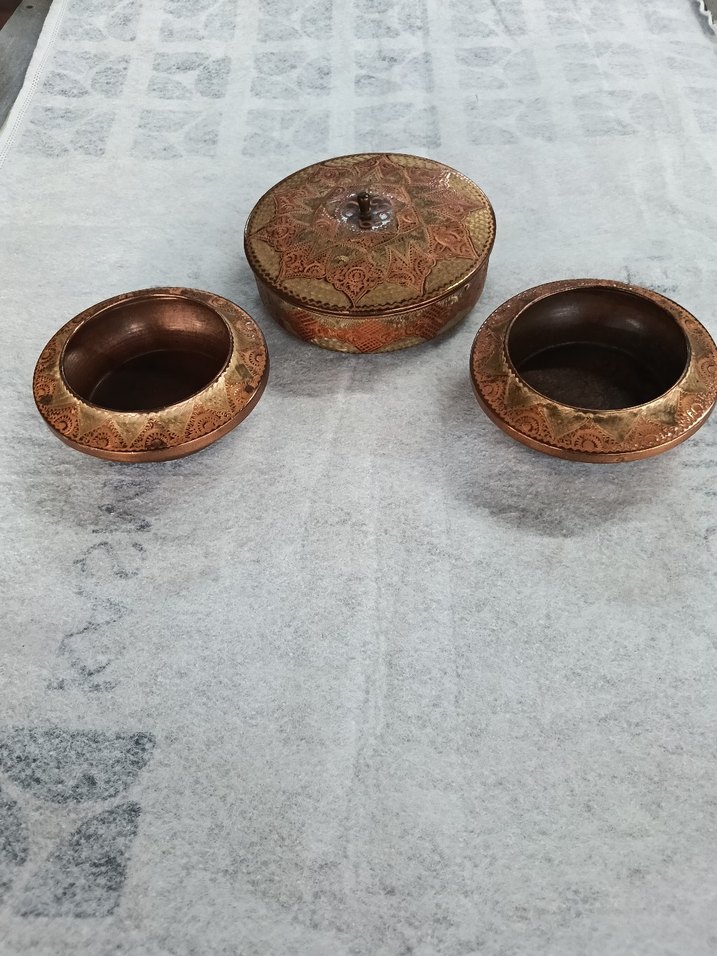 Antika Erzincan işi işlemeli bakır obje üç parça