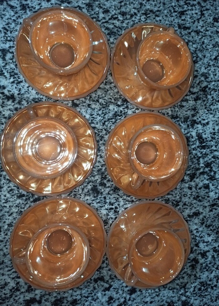 Detaylı resim atarım isterseniz sadece birinin tabağında ufak kırılma var resimlerde ekli Anchor hocking usa üretimidir
