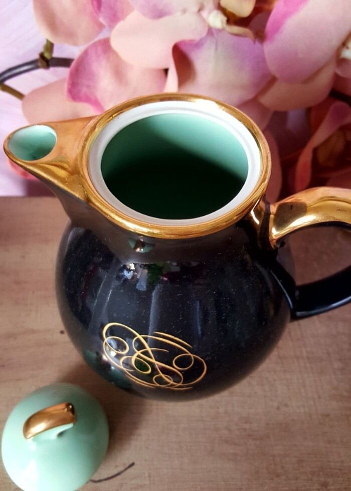 porselen lacivert yesil ve altinvermey el boyama dekorlu kusursuz damgali