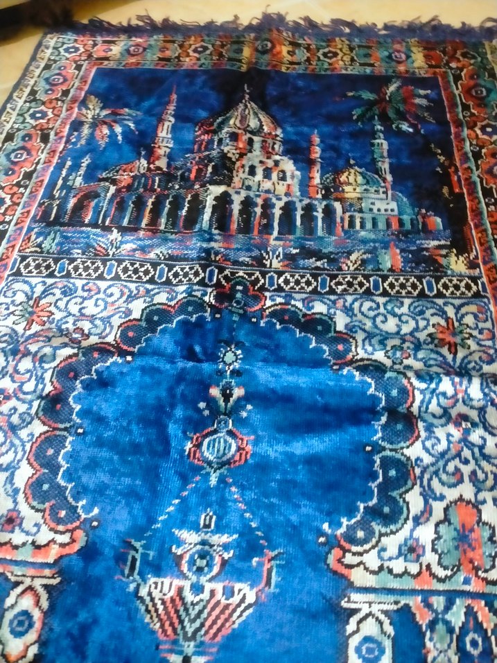 Antika pırıl pırıl kadife dokuma seccade koyu mavi renkte, mimari figürler ve çiçek desenleri içeren geleneksel desenli halı. Her mekâna klasik bir hava katar. ️#antikaseccade#kokeksiyonseccade